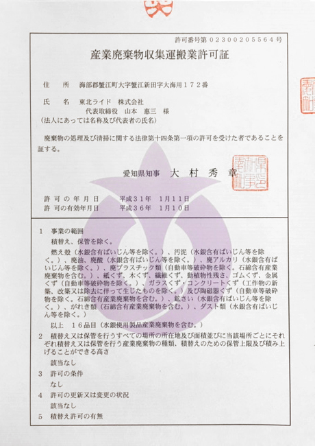 産業廃棄物収集運搬許可 第02300205564号![]() 愛知県計量証明 事業登録 第825号 古物商 愛知県 第542661202900号 |